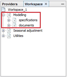 In the graphical user interface modelling algorithms can be accessed in two ways described below. In both cases a document (.xml file) will be generated and can be save in the workspace. The output (series, parameters and diagnostics) cannot be exported as files, just directly copied from the interface. Further details on window structure in GUI are available here.