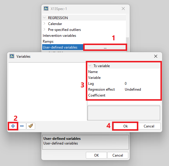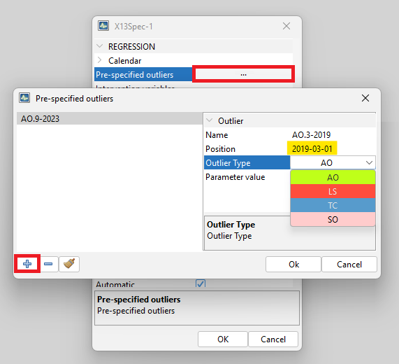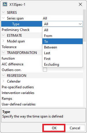 Creating a new specification in the Seasonal adjustment section