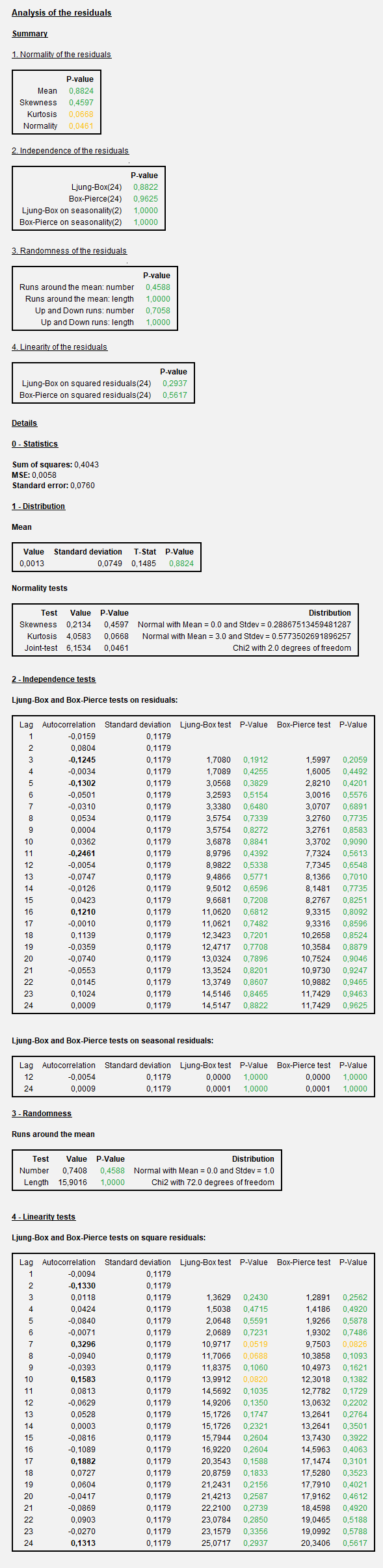 • seasonality tests on residuals