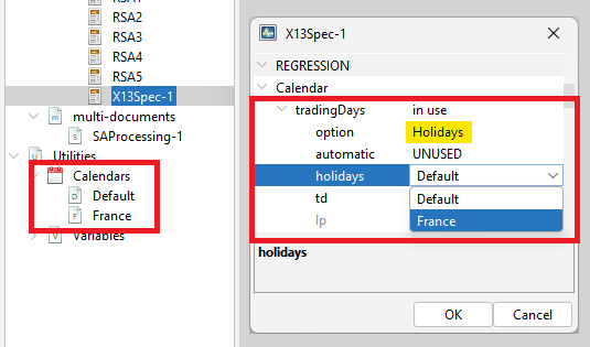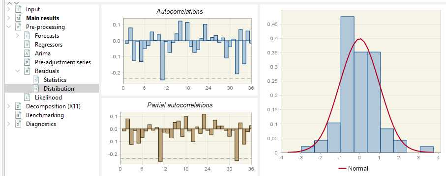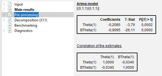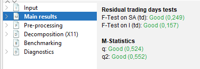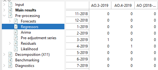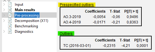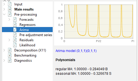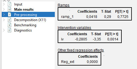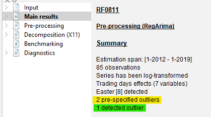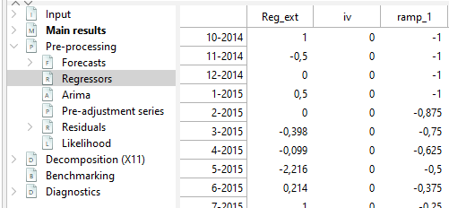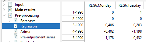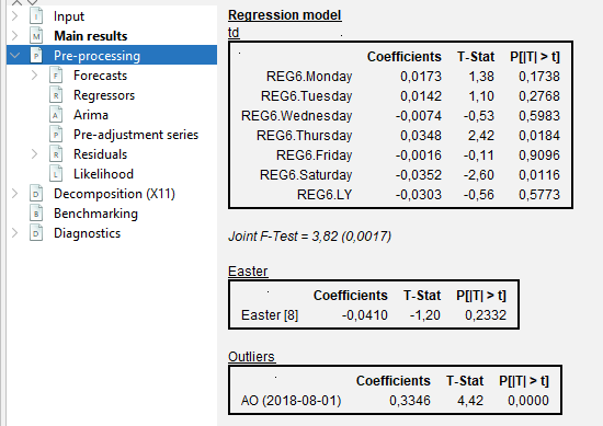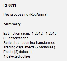 Reg-ARIMA modelling part can be the first of a seasonal adjustment process or run on its own. Below we focus on performing Reg-ARIMA modelling as pre-treatment in a SA processing.