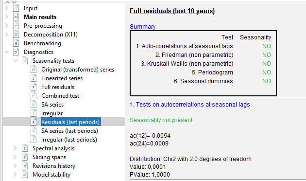 Seasonality tests on residuals in the Diagnostics NODE