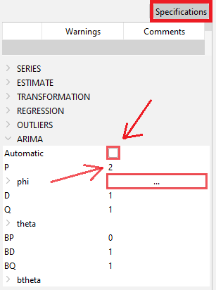 Spec identifier Log/level detection Outliers detection Calendar effects ARIMA