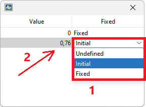 • Select the regression variable from the list for which the coefficient will be fixed.