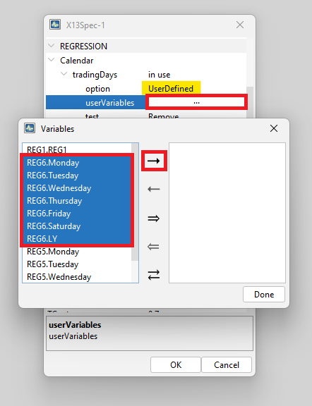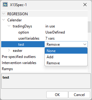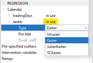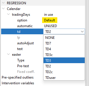 • easter tested (default length = 6 days in Tramo, 8 days in X-13-ARIMA)