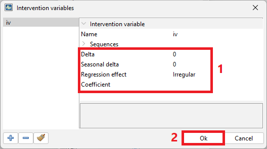 • Push on the fixed regression coefficients editor button in the User-defined variables row.