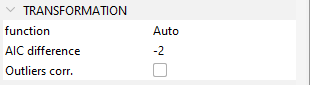• Choose the transformation (log or none).