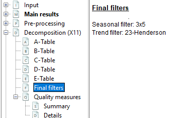 Final seasonal filer: length of final seasonal filter for seasonal component estimation (in the second part of the D step).