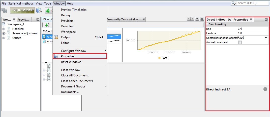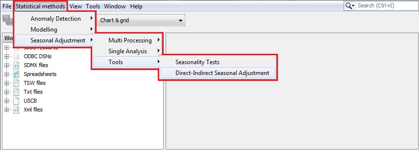 JDemetra+ offers a Direct–Indirect Seasonal Adjustment functionality that facilitates the comparison of the results from these two strategies, which is launched from the main menu.